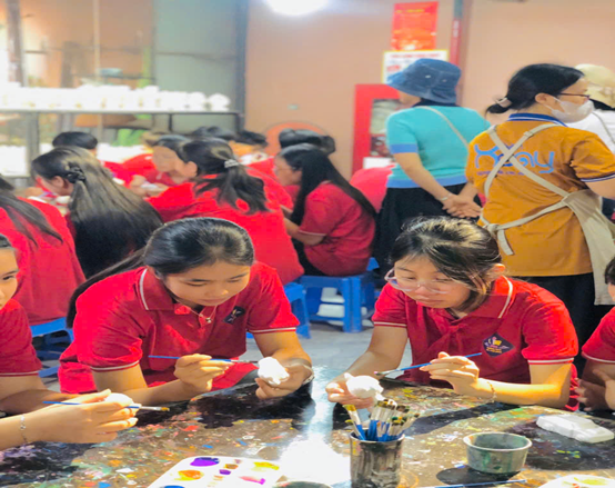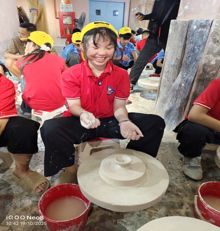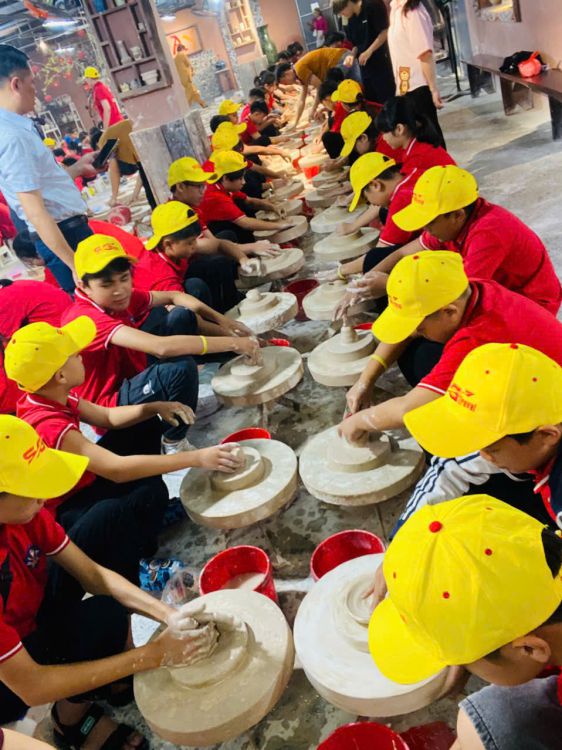 Địa điểm cuối trong chuyến trải nghiệm, đoàn ghé thăm Làng gốm Bát Tràng, nơi các em được tự tay trải nghiệm làm gốm, hiểu hơn về nét đẹp của nghề truyền thống dân tộc. Những sản phẩm nhỏ xinh, tuy còn mộc mạc, nhưng chứa đựng niềm vui, sự sáng tạo và lòng tự hào của các em.