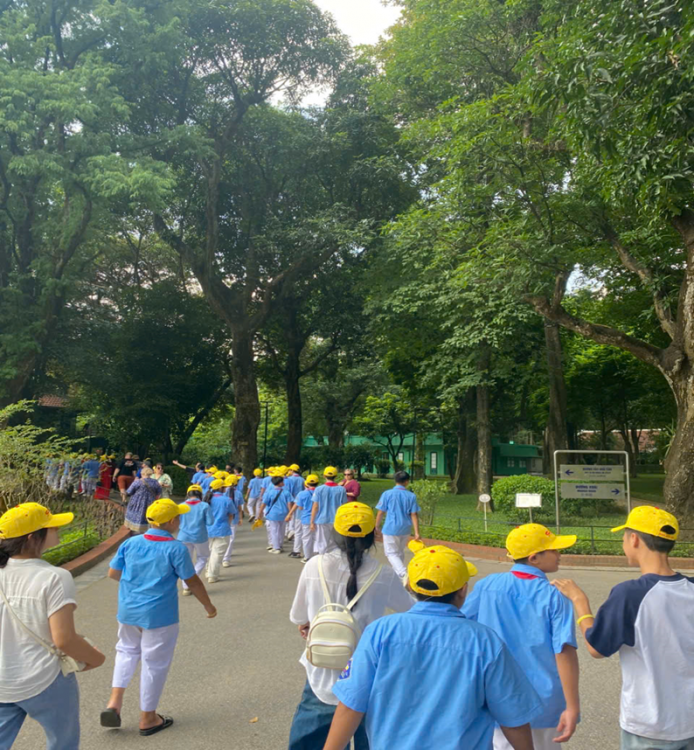 Mở đầu hành trình, các em học sinh được vào Lăng viếng Chủ tịch Hồ Chí Minh - vị lãnh tụ kính yêu của dân tộc Việt Nam. Trong không khí trang nghiêm và xúc động, các em thể hiện lòng biết ơn sâu sắc, niềm tự hào và tình cảm thiêng liêng với Người.