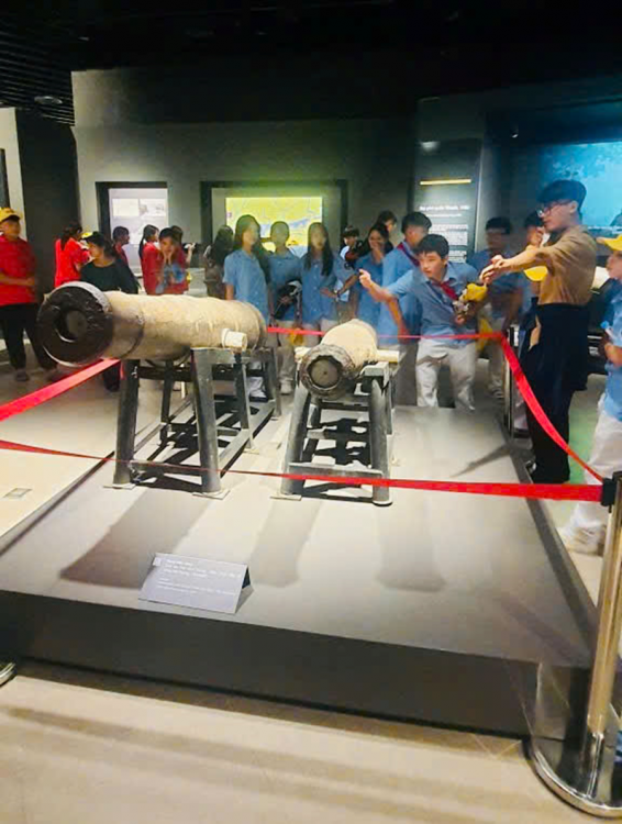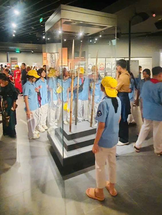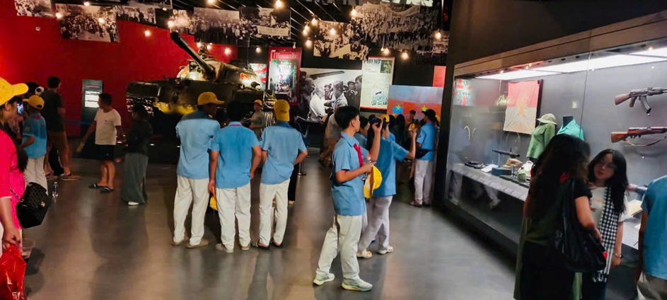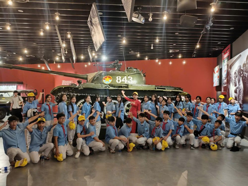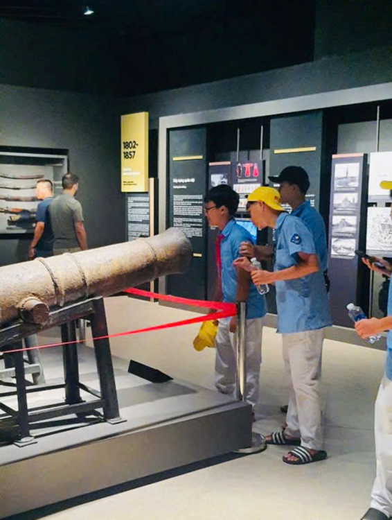 Tiếp đó, đoàn tham quan Bảo tàng Lịch sử Quân sự Việt Nam, nơi lưu giữ nhiều hiện vật, hình ảnh và câu chuyện hào hùng về chặng đường đấu tranh giành độc lập của dân tộc. Mỗi bước chân qua các phòng trưng bày đều là một bài học sinh động về lịch sử, về tinh thần yêu nước và ý chí kiên cường của cha ông.
